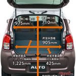 アルトは後席の快適性を大幅に高めた。身長170cmの大人4名が乗車したとき、10年前に販売されていた2世代前のアルトでは、後席に座る乗員の膝先空間が握りコブシ1つ少々だった。