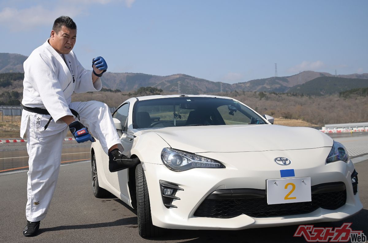 そんな臆病風を吹き飛ばすべく、レーシングスーツならぬ柔道衣、レーシンググローブの代わりに格闘技用のグローブ、そしておろしたてのレーシングシューズといういでたちで己に気合を入れた。クルマは先代86のAT後期型。まずはVSCオンのままシートレールをいっぱいに下げ、スタートした。