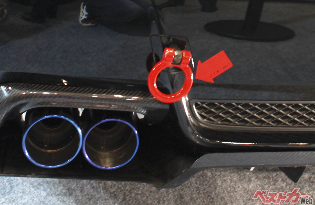 ●牽引フック ~レーシングカー的な雰囲気を演出できるが出っ張り過ぎに注意~