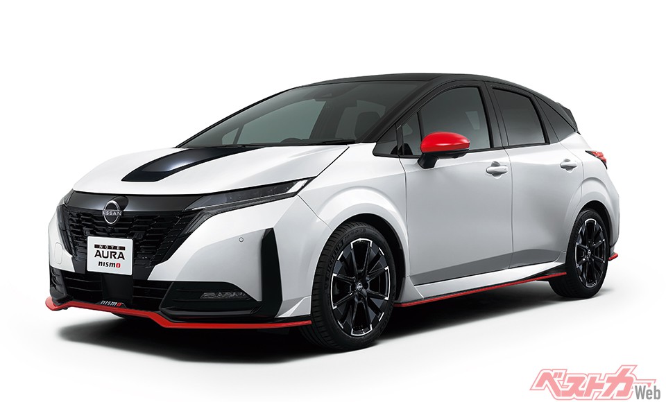外観には専用デザインのエアロパーツが備わり、タイヤはミシュランパイロットスポーツ4に上級化される。サスペンションの設定も異なり、走行安定性を向上させた。内装では、メーターやシート生地などが専用タイプになり、価格はノートオーラGと比べて、約26万円の上乗せに抑えている。