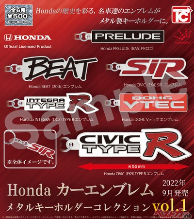 ラインナップは「Honda DOHC Vテック エンブレム」、「Honda CIVIC (EK9)TYPE R エンブレム」、「Honda INTEGRA (DC2)TYPE R エンブレム」、「Honda CIVIC (EK4)SiR エンブレム」「Honda PRELUDE (BA5)PRロゴ」「Honda BEAT (20th)エンブレム」の全6種類。