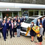 最後は皆さんのお見送りを受けて、早速新車のアウトランダーで次の仕事に向かわれた。