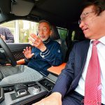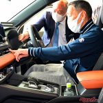 この後テリー伊藤氏は納車手続きを行い、アウトランダーの多様な機能の説明をディーラーの担当者から受けた。4WDモードの切り替えといった走行機能はもちろん、スマートフォンとの連携まで詳細なレクチャーに大満足であった。