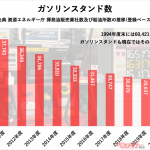 それに加え、高度成長期以降のモータリゼーションの拡大とともに増えたガソリンスタンドの数も、ここ10年で次々と設備の更新時期を迎えて費用負担が大きくなっていることや後継者不足、収益性の悪化もあり、ピークの半分以下まで減り続けている。