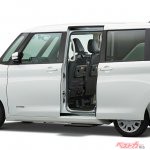 左側のピラー(柱)はスライドドアに内蔵され、前後のドアを両方ともに開くと、開口幅は1490mmに達する。買い得グレードは標準ボディのXで、実用装備を充実させ、価格は150万円以下に抑えた。