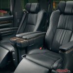 GF、S・C、S・Cパッケージが採用するエグゼクティブパワーシートのセカンドシートは500mmロングスライド可能(手動)。オットマンは電動式で、折りたたみサイドテーブルは木目調加飾で豪華。リラックスキャプテンシート同様、2-3列目のウォークスルー機構を備えている。