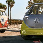 ID.Buzzのデザインには、大きなVWマークやポップなツートーンカラーなど、タイプ2のT1やT2をイメージさせるディテールもあるが、ヘッドライト周りやリアコンビネーションランプ、短いオーバーハングを含めた全体的な印象など、全く異なる部分も多い。