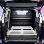 全長は4,712mmとアルファードより200mm程度短いにもかかわらず、ホイールベースは2,988mmとほとんど同じ。バッテリーEVの利点である、レイアウトの自由度を生かした高効率パッケージングのおかげだ。乗用モデルの乗車定員は5名(将来的にはバリエーションが増えるだろう)で、後席を使用した状態での荷室容量は1,121L、2列目シートを折りたたむと2,205Lの容量を確保できる。