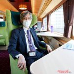 「気品ある車内をゆっくりと楽しんでいただければ」と語るのは近畿日本鉄道の技術管理部奥山元紀さん。「あをによし」をはじめ、これまで近鉄の数々の車両に携わってきた、近鉄電車の車両のレジェンド的存在の奥山さん。この列車にも随所にこだわりを詰め込んでいる。