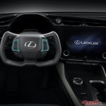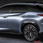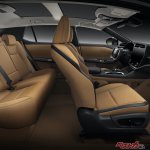 リアはシンプルな水平基調のデザインによって、リアタイヤの存在感が増しており、ワイドなスタンスを表現。一文字リアコンビネーションランプと、NXから続く新しい「LEXUS」ロゴも採用されており、センター部を段落としした赤色レンズ部が、非常にシャープだ。