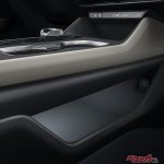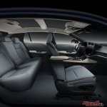 インテリアは、低く配置したインパネと異形ステアリング、シンプルなドアトリムなどが特徴的だ。ドアの開閉時には、ドアトリムオーナメントに光の陰影が投影されるオシャレな演出付き(世界初の陰影イルミネーション)。