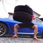 足を前後に開いた状態で屈伸を繰り返す「ランジ」もタイヤを抱えているだけで猛烈に効きます。タイヤはバーベルやダンベルなどと異なり、基本的に手で持ちにくいので、バランスを保つため体幹をフルに駆使することになるからです。さらに、2本以上のタイヤ&ホイールを抱きかかえてのスクワットも、かなり効きます。