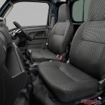 アトレー、ハイゼット同様、FR用のCVTやデフロック付きの電子制御式4WDやキーフリーシステムやプッシュエンジンスタート、電動格納式ミラーなど軽トラ初の装備やクラス初のスマートインナーミラー装着など、装備が豪華になった。