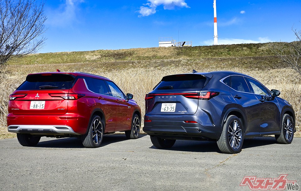 今回の対決は「三菱アウトランダーPHEV VS レクサスNX450h+」。自動車評論家 国沢光宏氏が、値段やカタログスペックだけではわからない性能差を5項目に分けて評価する!