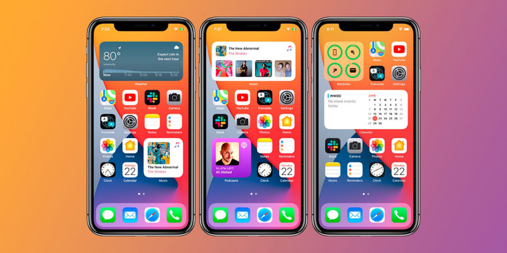 Widgets can be placed on any page of the desktop, not only in a separate menu. This is what made users howl. Now you can put the time, weather, news feed, physical activity indicators from the Health app on the main page – whatever you see fit. This is the freedom that iPhone owners have been missing since the very beginning of the confrontation between iOS and Android.