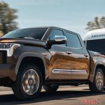 北米ビッグ3とはボディサイズがひと回り小さい(といっても全長5.6m、全幅2m、全高1.8m)トヨタのピックアップだが、最強モデルの「クルーマックス」はV8、5.7Lの381ps。V6ツインターボは3.4L、389psを用意していた。最新モデルではハイブリッドで437ps、790Nmの仕様を登場させている。