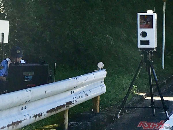 まだまだ認知度は低い「新型(可搬式)オービス」。文字通り“可搬(移動)”できることで神出鬼没ではあり、速度計測には電波(レーダー)ではなく「レーザー」を使用している。