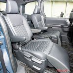スパーダe:HEVは革調マテリアルとファブリックのツートンシートを採用し、ノア&ヴォクシーのようなツヤ感ではなくマットな上質感で勝負しているし、AIRも含めてシートは全面刷新。「特に2列目を骨格から新規に起こし、サイズを拡大し、クッションを1列目とは変えている」。