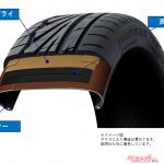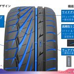 タイヤ設計基盤技術「T-MODE(ティーモード)」を活用するとともに、構造の最適化が図られた。結果従来品であるPROXES T1Rに比べウェットハンドリング性能と操縦安定性が向上した。