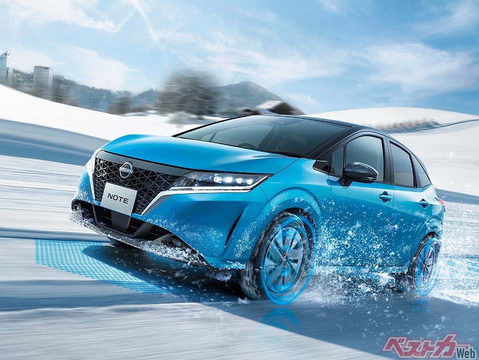 ノートe-POWER 4WDのリアモーターは、最高出力50kW、最大トルク100Nmいうスペックだが、これは大幅に出力を絞って使っているそうだ。