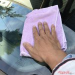 水でしっかり洗い流したら、水分を拭き取る。吸水性に優れたソフト99のマイクロファイバークロス「激吸水(レギュラーサイズ)」を使ってみた。