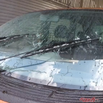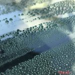 未施工で油膜のみ落とした状態では、まったく水玉が流れない。ただし80km/h以上ではアメーバが移動するように粘りながら水玉が流れ出し、ワイパーによる視界確保も洗車前より良好となった。