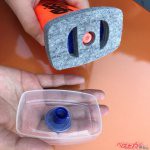 ちなみに「ぬりぬりガラコDX」とよく似た容器デザインを採用しているが、塗り込むためのヘッドはガラコDXが首振り機能でガラスとの密着性を高めているのに対し、「ガラコぬりぬりコンパウンド」の方はヘッドが動かない仕様なので、力を込めてもグラグラせず、効率的に力が伝わって磨きやすい。このあたりの工夫も作業性を高めているのだろう。