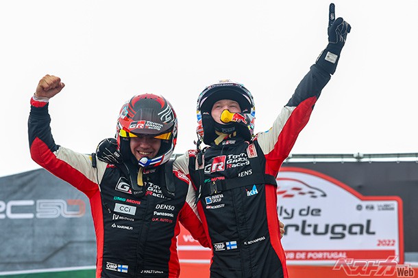 5月22日(日)、2022年FIA世界ラリー選手権(WRC)第4戦ラリー・ポルトガルの最終日デイ4が、ポルトガル北部マトジニョスのサービスパークを起点に行われ、カッレ・ロバンペラ/ヨンネ・ハルットゥネン組 (GR YARIS Rally1…