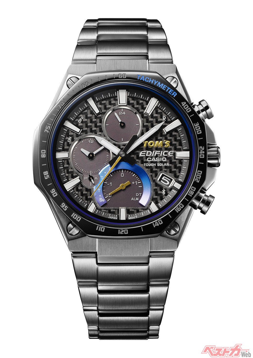レースチームの名門「TOM’S」と日本が誇る時計ブランド「カシオ」がコラボ! モータースポーツ好きには欠かせないカーボンやチタン色を使用。値段は6万9300円となっている